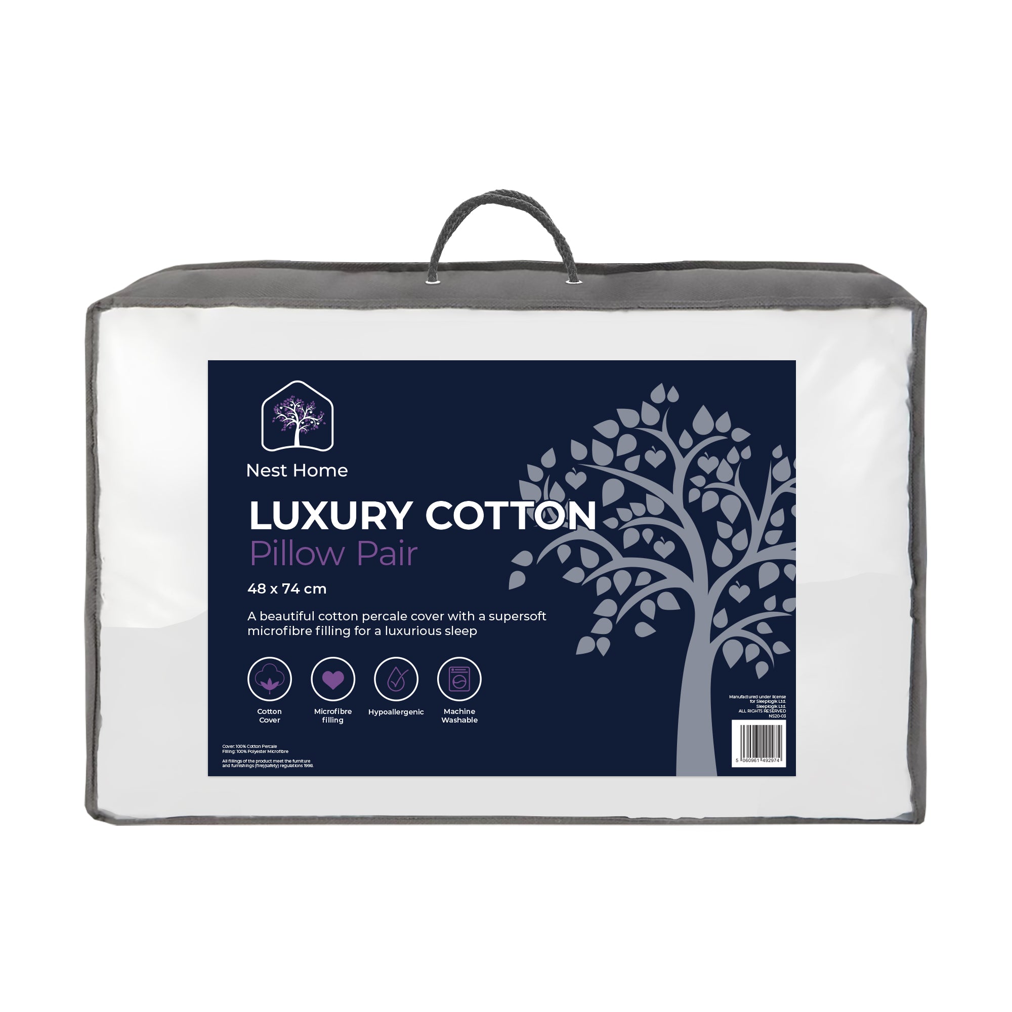Sleep in natural comfort with our Luxury Cotton Pillow Pair. The crisp cotton percale cover offers breathability and freshness, while the supersoft microfibre filling delivers gentle support for a luxurious night’s rest.